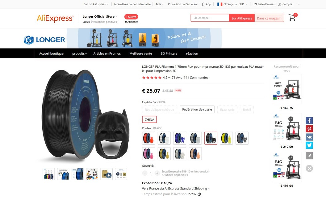 La société LONGER est présente sur le net depuis septembre 2018 Spécialisée dans l'impression 3d, elle est remarquable dans la fiabilité de leurs imprimantes. Nous avons testé pour elle la dernière née L'Imprimante Lk4 pro